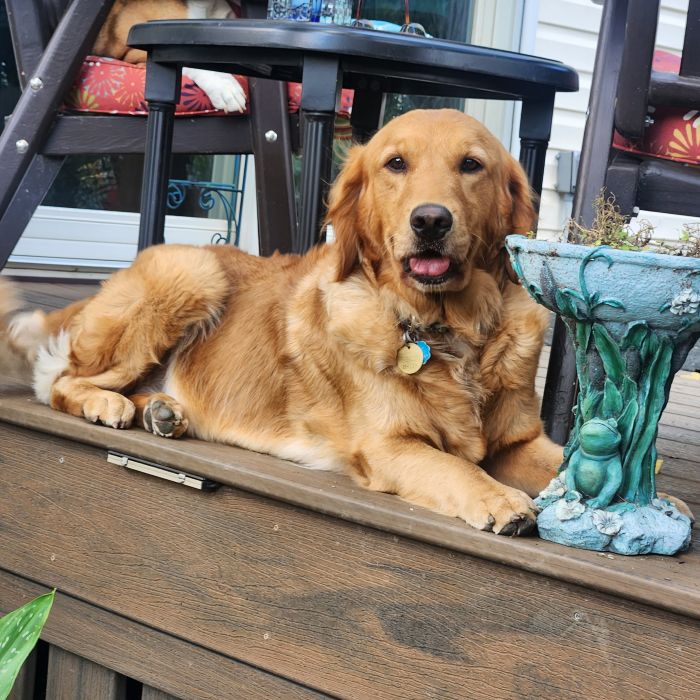 The day we met Duke, he totally captured our hearts. A 4-year-old puppy mill survivor, this sweet golden was scared of almost everything common. Stepping onto our patio, loud noises, and going through doorways was terrifying. It was over 6 months before he picked up a toy and mastered going up steps. He finally found his voice after 1 year.